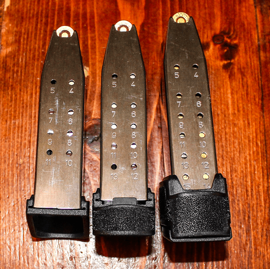 All are readily available. Finger extensions are included on the 13- and 15-rounders.