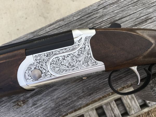 Attractive engraving and upgraded, figured walnut make for an impressive looking budget-priced smoothbore. You can see every dollar of the $170 premium you pay over the base 555 shotgun models.
