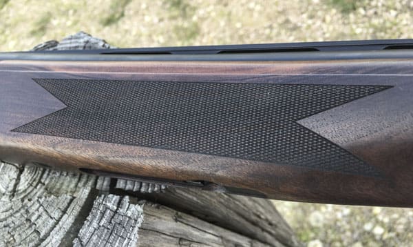 The 555 E’s machine-cut checkering isn’t as deep or tactile as you’d get in a hand-cut gun; I’d prefer something a little more aggressive. But what do you expect in an over/under retailing for under $700?
