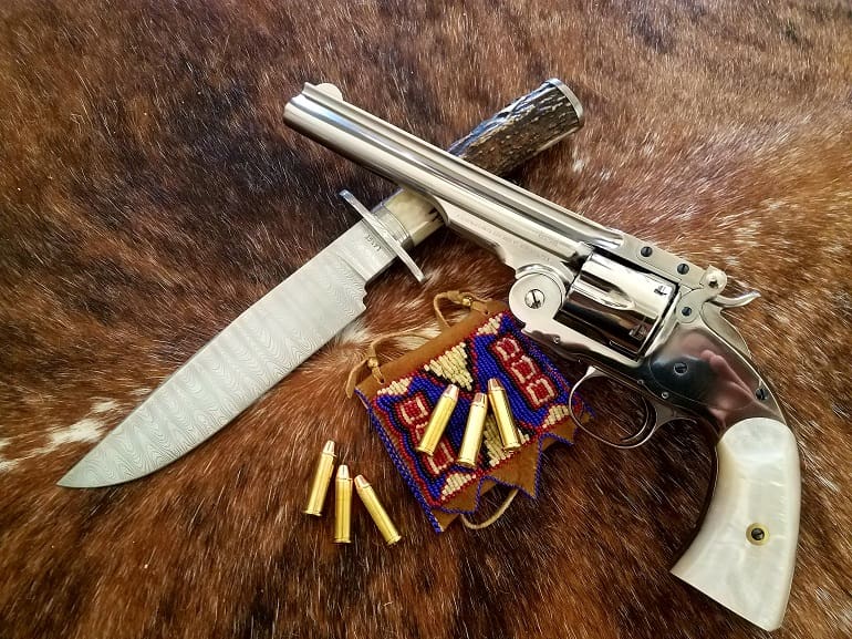 Some years ago I purchased a replica S&W New Frontier #3 top-break revolver in .45 Colt with a blue finish. I agree with you about the handling and shooting qualities of the top-break revolvers – they are just fun! The only thing I did to pimp my revolver was to change out the wooden grips for after-market hard rubber ones. In .45 cal, it bucks a bit when fired, but still very comfortable to shoot. I only shoot smokeless cartridges with this gun. Mike Beliveau (Duelist1954 on YouTube) has a video of him shooting this gun with black powder, if you’re interested.